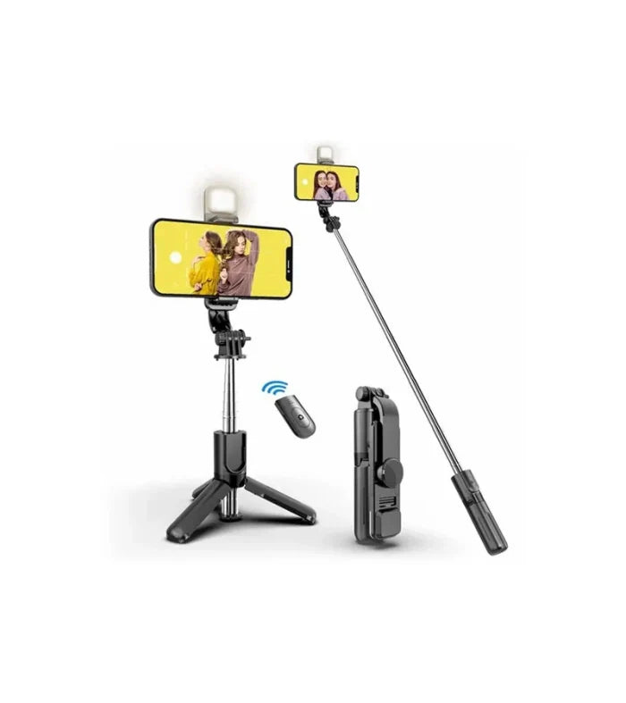 Perfect selfie ab sirf ek click door! Yeh Selfie Stick Tripod R1s hai latest model jisme built-in wireless Bluetooth remote, adjustable tripod stand aur bright LED light bhi shamil hai. Har angle se perfect shot mile, chahe vlog ho, travel ya group selfie — yeh ek hi gadget mein sab!